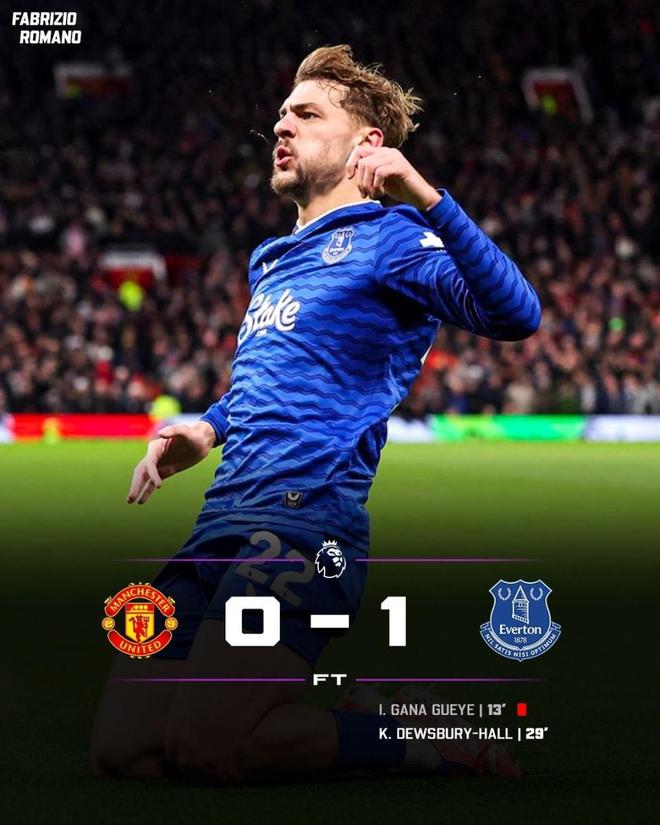 埃弗顿也成为英超史上首支,十人作战依然能在客场掀翻曼联的球队。这也是曼联时隔12年,再度在英超主场输给埃弗顿。